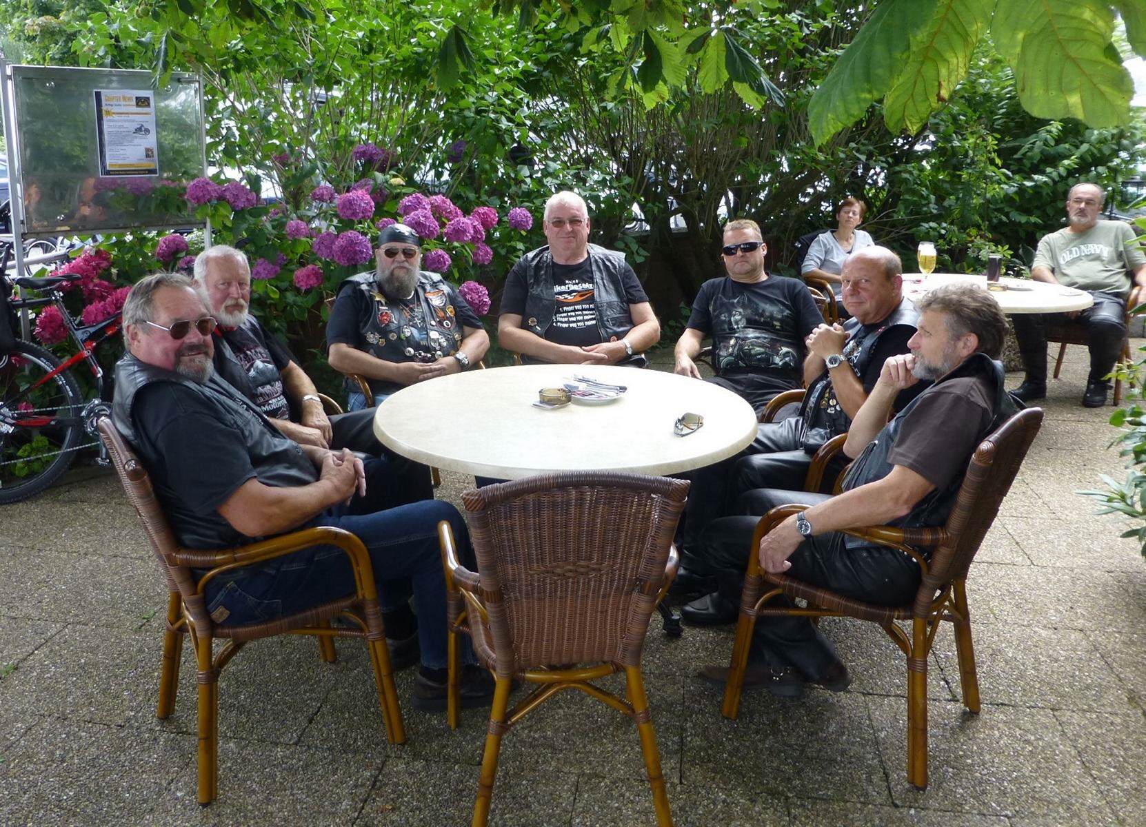 Dann war es soweit, der Director vom Chapter, Hans Barner, lobte alle Biker für die tadellose Disziplin und Fahrweise in den Gruppen. Letztendlich sollten ja 212 km bei den sommerlichen Temperaturen von 27 Grad, erst mal in ca. 8 Stunden runtergespult werden (mit 3 größeren Pausen).