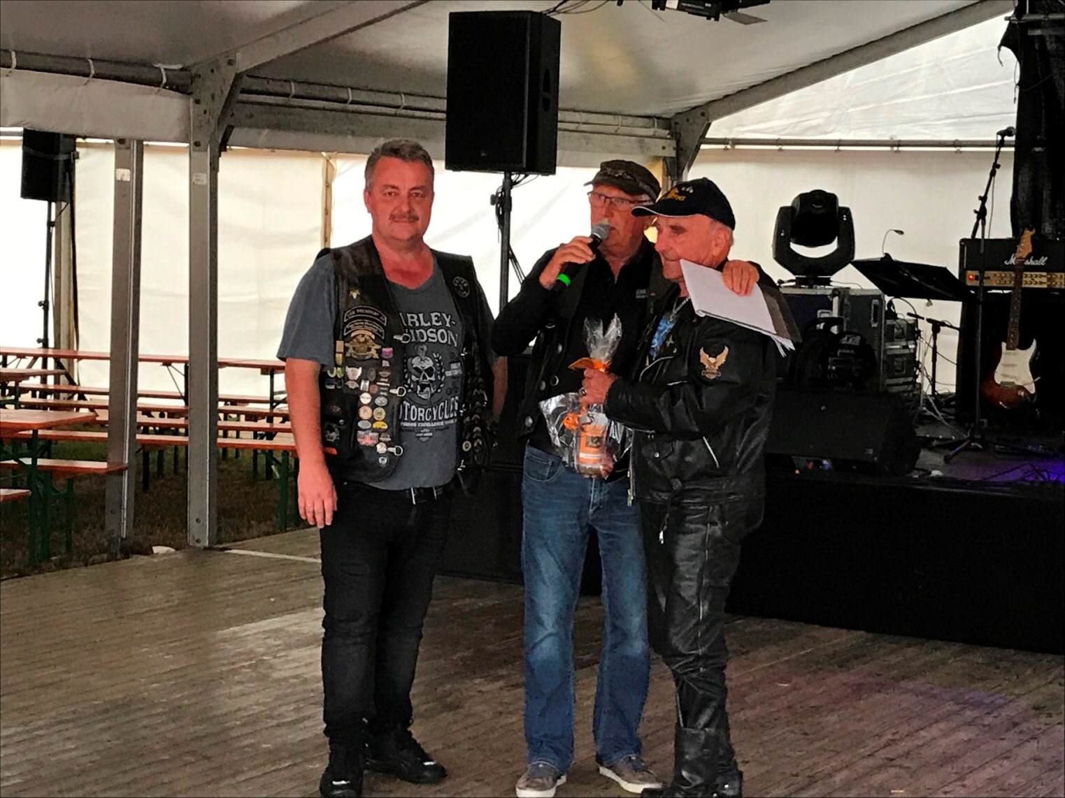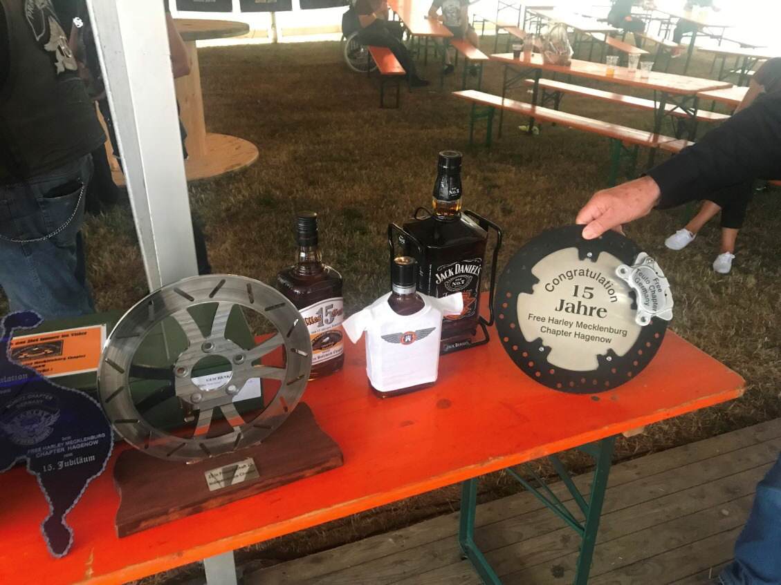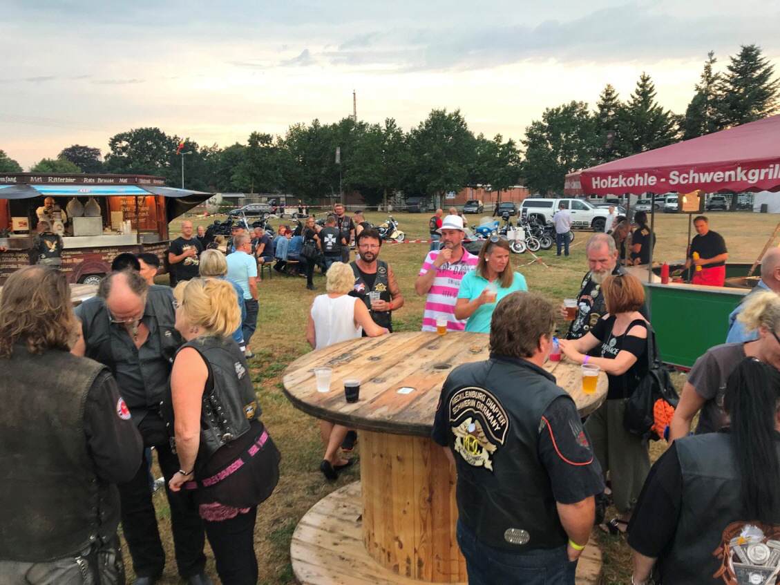 Es waren dabei 9 United 23 Chapter, 9 HOG Chapter, auch das Schweden Chapter, 11 weitere MC, Motorradfreunde, Kradmelder Rostock, Vulkan Rider aus Dänemark, Motorradfreunde Elbetal, Free Biker Dömitz, Nordlicht Mecklenburg, Free Biker Sondershausen, Club Parchim, SFT Sachsen Anhalt usw. Die weiteste Anreise Wolfgang Fleischer vom Steinwald Chapter aus Pullenreuth, mit 567 km, die älteste Bikerin Christina Freiboth aus Sondershausen mit 64 Jahre, der älteste Biker war Horst Hering aus Schwerin mit 81 Jahren, das größte anwesende Chapter war das Hanseaten Chapter aus Hamburg. Anmerkung: Da wir ja der United 23 angehören, wäre eine größere Beteiligung gerade zur 15.Jubiläumsparty wünschenswert gewesen, Worte große Gemeinschaft " von manchen", lasse ich mal so mit Fragezeichen stehen ?.