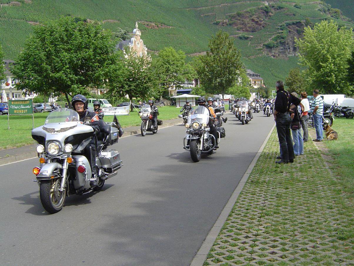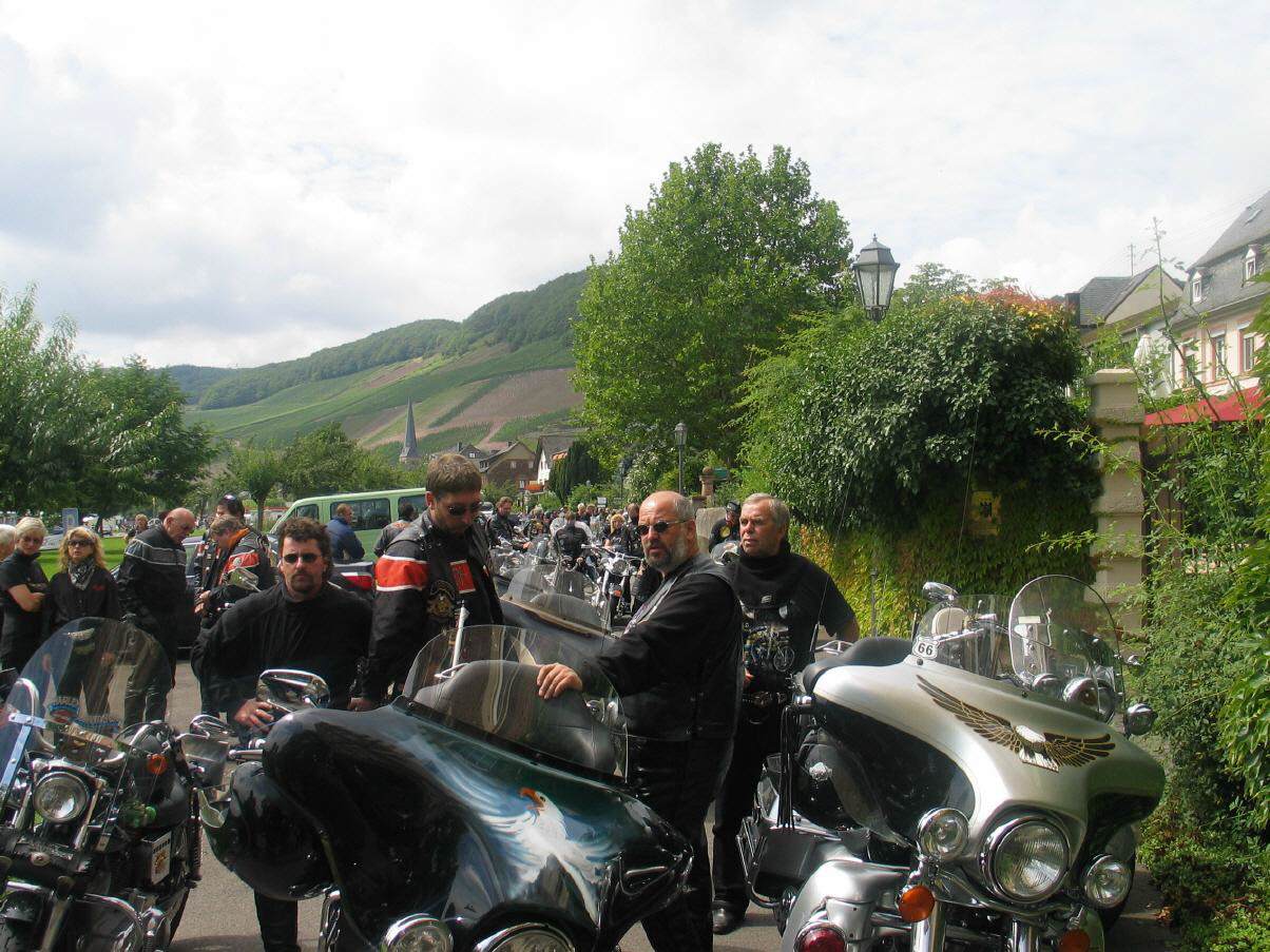 Das dreitägige Harley – Event in Ürzig bildete dann den abschließenden Höhepunkt unserer Tour. Bei Wein und Bikermusik war die Stimmung ausgelassen. Mit Freude und Begeisterung verfolgten auch viele Schaulustige entlang der Mosel die Biker auf ihrer Ausfahrt. Die erlebnisreiche Stunden und Tage unserer Tour gingen damit dem Ende entgegen.