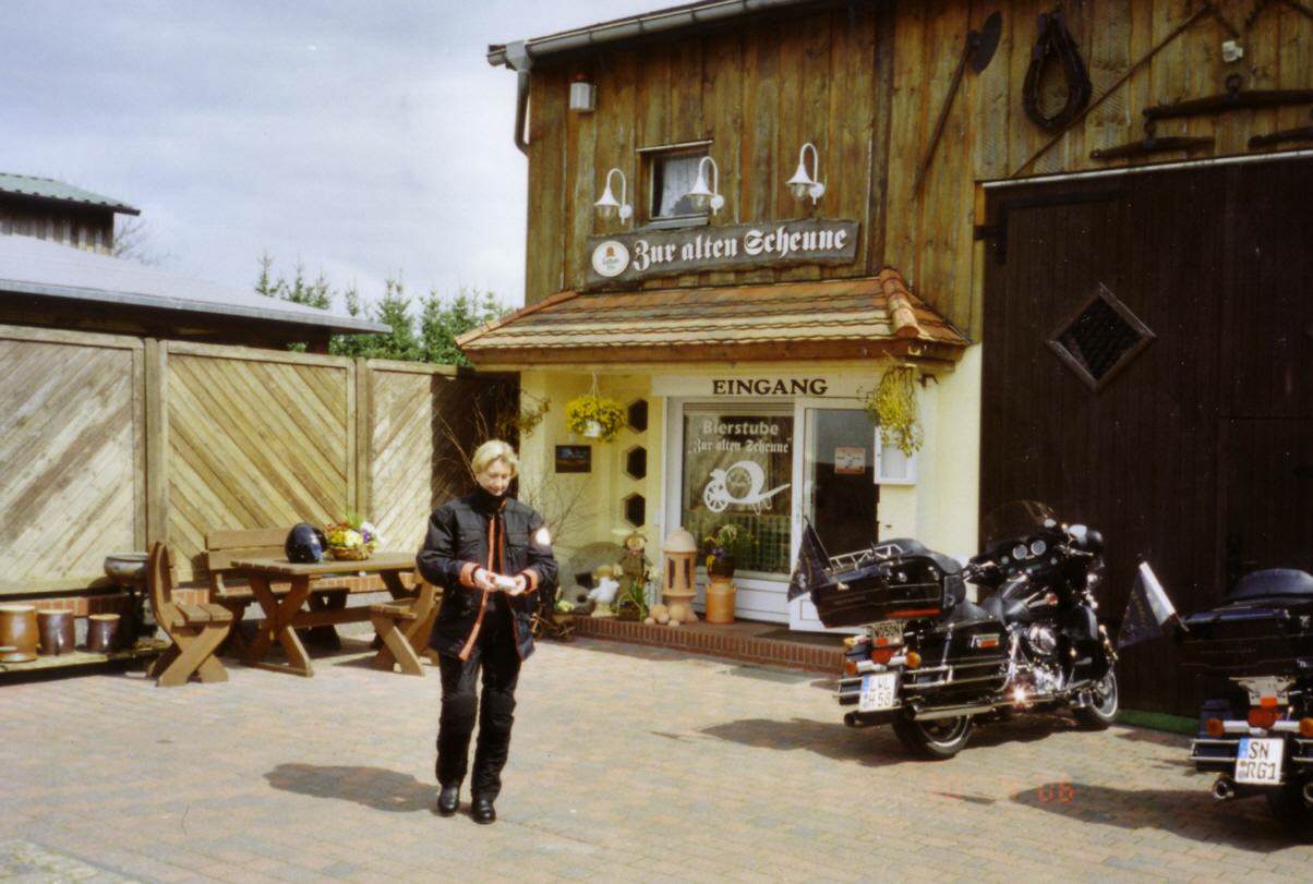 Auf der Suche nach interessanten Tourzielen erhielten wir den Tipp: „ fahrt mal zu „Specki“ nach Zepkow, der betreibt dort die Gaststätte -Zur alten Scheune- und ist selbst begeisterter Motorradfahrer“.Da wir bereits am 30. April eine Tour an die Müritz geplant hatten, entschlossen wir uns Specki in Zepkow aufzusuchen. Dort trafen wir auch zu Mittag ein und wurden freundlich von den Wirtsleuten Schacht empfangen und köstlich bewirtet.
