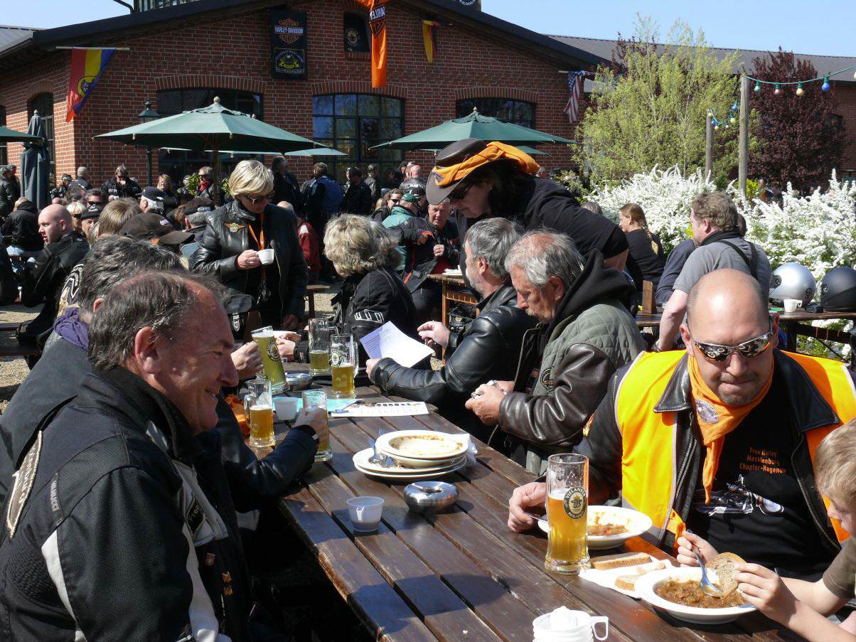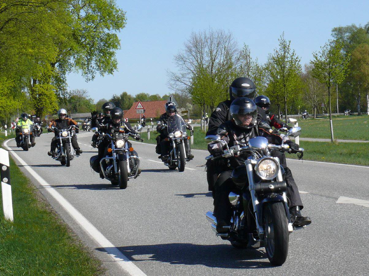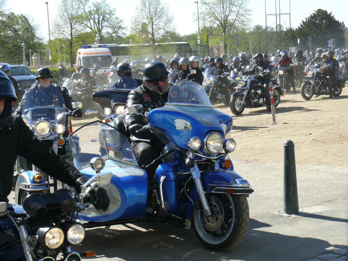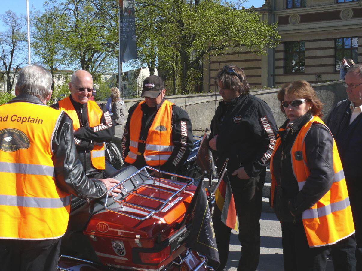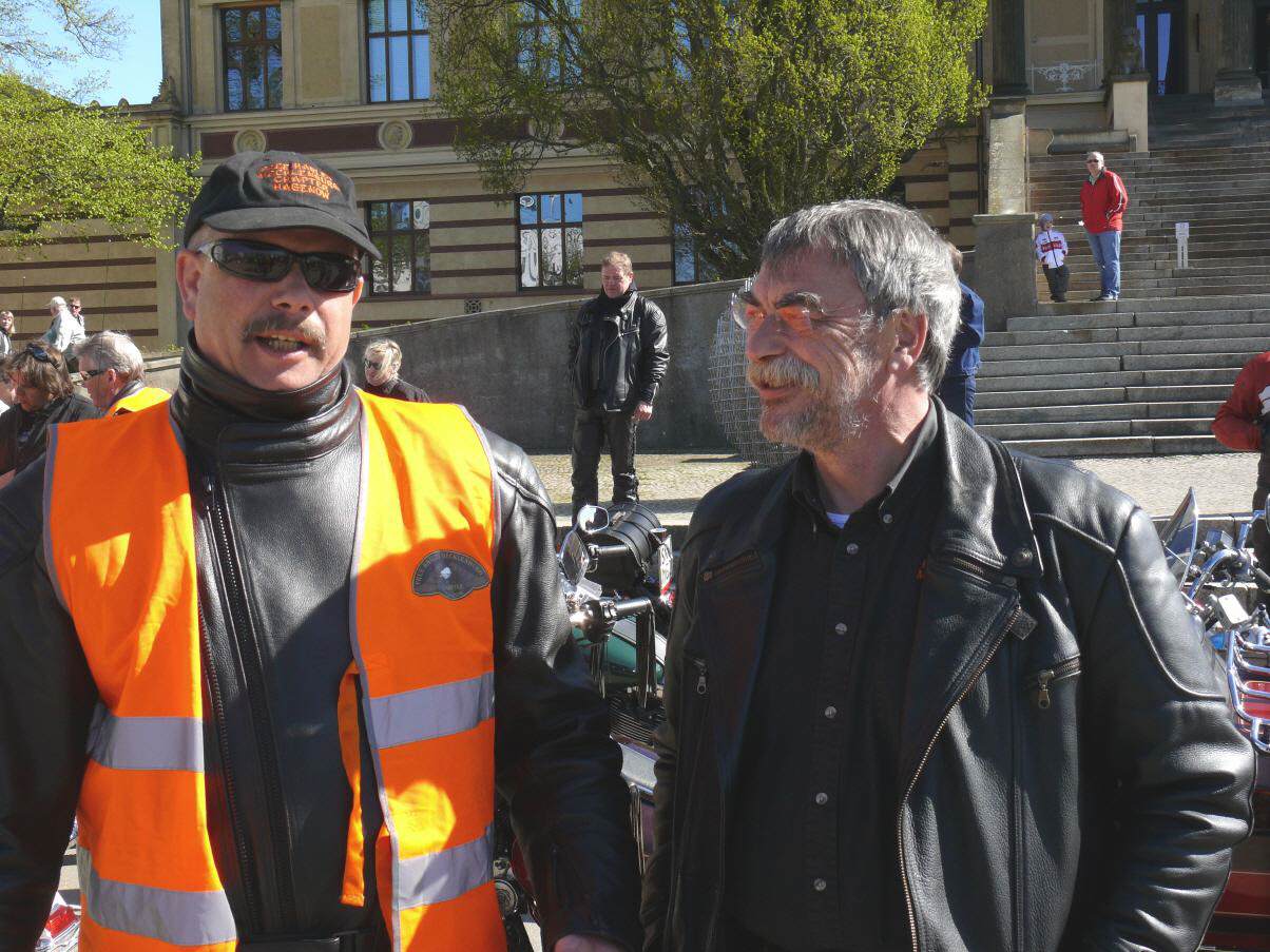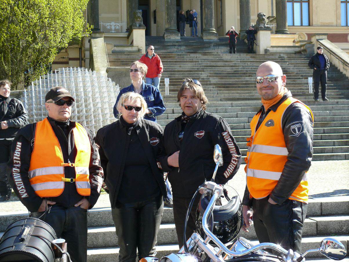 An die 450 Bikerinnen und Biker trafen sich am 19. April in Schwerin auf dem Alten Garten zu unserem diesjährigen symbolischen Saisonstart. Vor dem Start zur gemeinsamen Ausfahrt unterstützte unser Chapter die bundesweite Verkehrssicherheitsaktion "Runter vom Gas". Der vom Bundesverkehrsminister eingesetzte Sicherheitsbeauftragte Jürgen Baumgarten fand dabei reißende Abnehmer für die im Rahmen dieser Aktion angebotenen Sicherheitswesten mit der Aufschrift "Runter vom Gas".