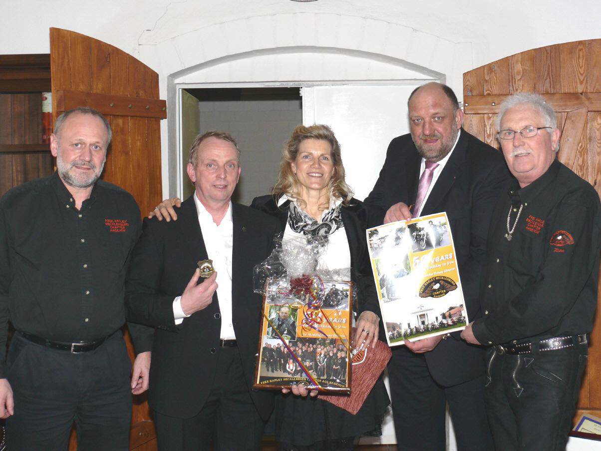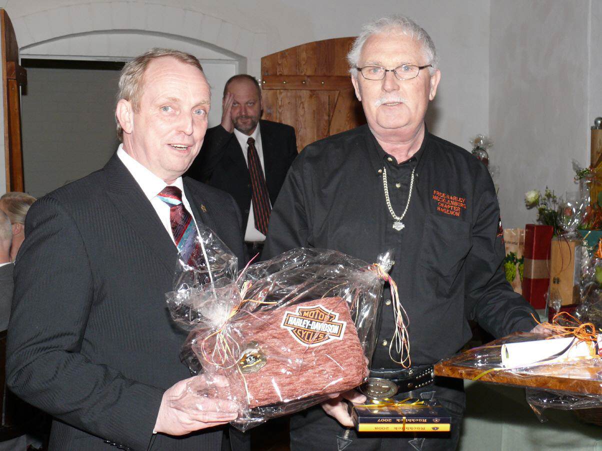 des Vereins dokumentieren, erhielt Minister Backhaus als erstes Vereinsmitglied unseren neuen Chapterpin. Minister Backhaus ist selbst begeisterter Harleyfahrer und Gründungsmitglied des Vereins. Wenn es seine begrenzte Zeit zulässt ist er mit uns gemeinsam auf Tour.