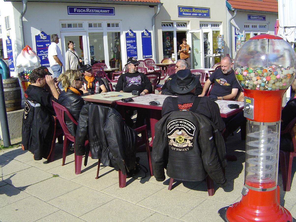 Für den 10. September verabredeten wir uns zu einer Tour an die Ostsee. Alle die Interesse hatten trafen sich um 10.00 Uhr in Schwerin und waren mit der von Gerald vorgeschlagenen Fahrstrecke einverstanden. Über Ventschow, Warin, Neukloster und Satow erreichten wir gegen Mittag Warnemünde. Dort stellten wir unsere Bikes am Bahnhof ab und gelangten zu Fuß ins Stadtzentrum.