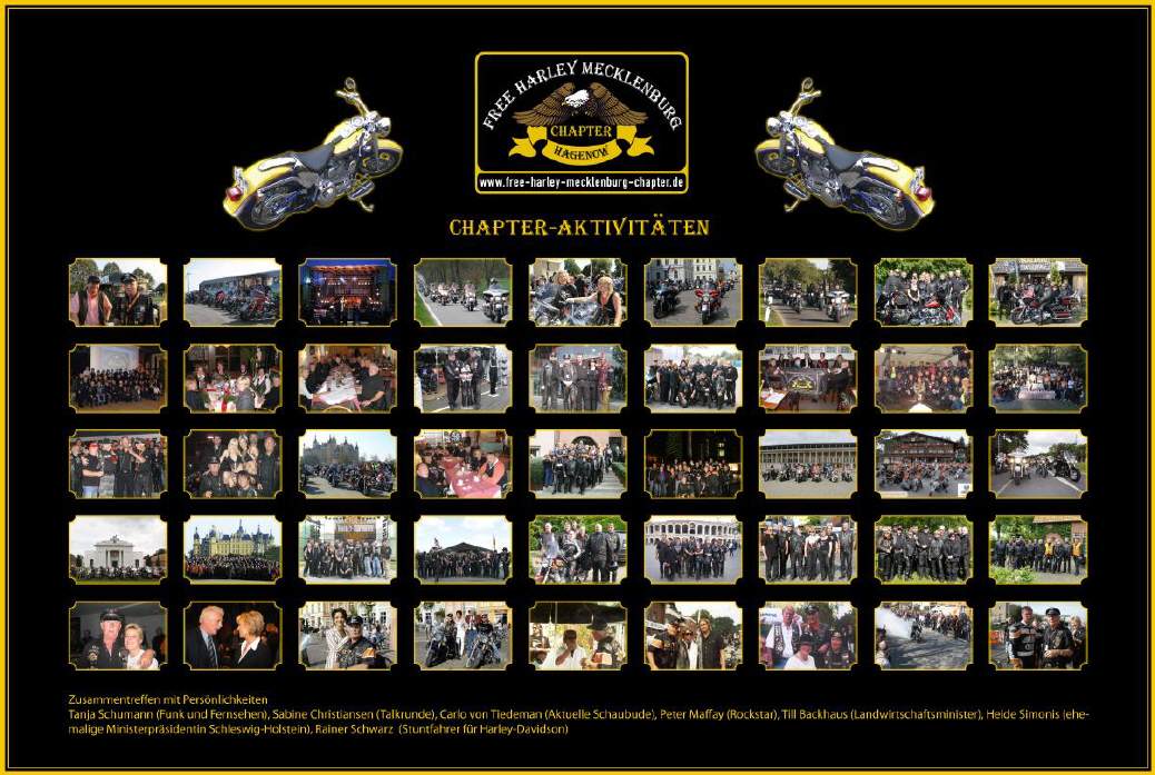 Im Rückblick der 15 Jahre könnt Ihr Euch selbst von allen Aktivitäten überzeugen. Wie z.B. diei offenen Ausfahrten, jährlicher Biker- Saisonbeginn, mit sehr große Resonanz, die jähliche Biker Sommer Party oder das Biker Saisonende. Wir können auf Besucherzahlen zwischen 400 und 720 Biker zurückblicken.